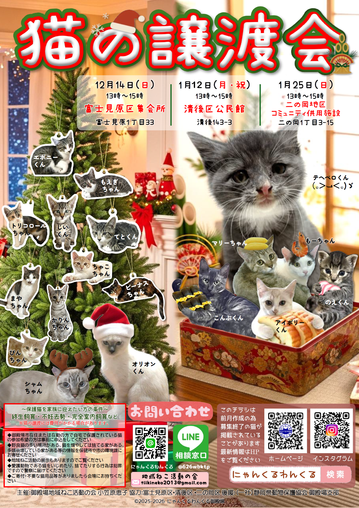 ※御殿場在住または在勤の方で自宅で保護されている猫の譲渡会参加希望の方は、事前に申し込みをして下さい(参加条件は直接説明を受けて下さい)